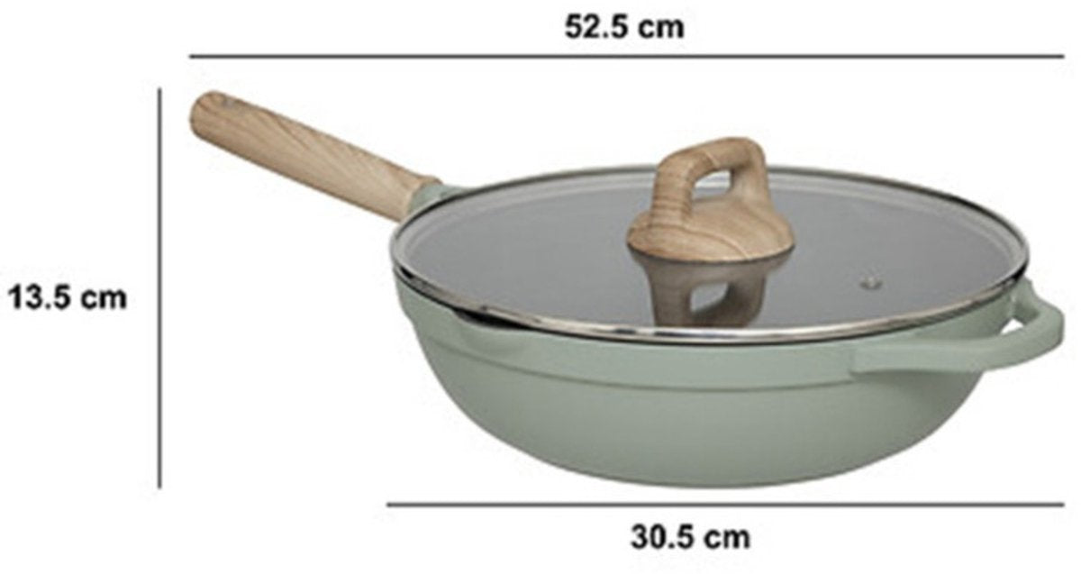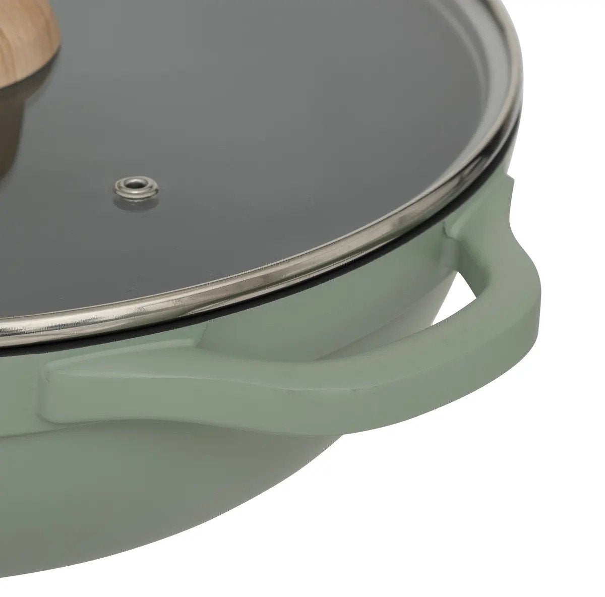 5Five Braadpan met glazen deksel - Alle kookplaten geschikt - groen/beige - D28 x H13cm - Souteerpan
