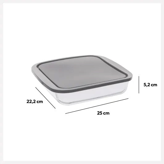 Keuken ovenschaal van transparant borosilicaat glas met deksel. De ovenschaal heeft een inhoud van 1.8 liter en afmetingen van 22 x 22 x 5 cm. Borosilicaat is top kwaliteit glas. Voor al uw oven gerechten of taarten in te bakken en te bewaren. De schaal wordt geleverd met handige deksel. Zo kan je je vers gebakken taart meenemen naar je werk of bewaren in de koelkast voor de volgende dag. De ovenschaal is vaatwasser en magnetron bestendig. Let op: de deksel is niet geschikt voor de vaatwasser, magnetron en oven. Oven tot maximaal 400 graden. Merk: 5Five. Collectie: Keepeat.