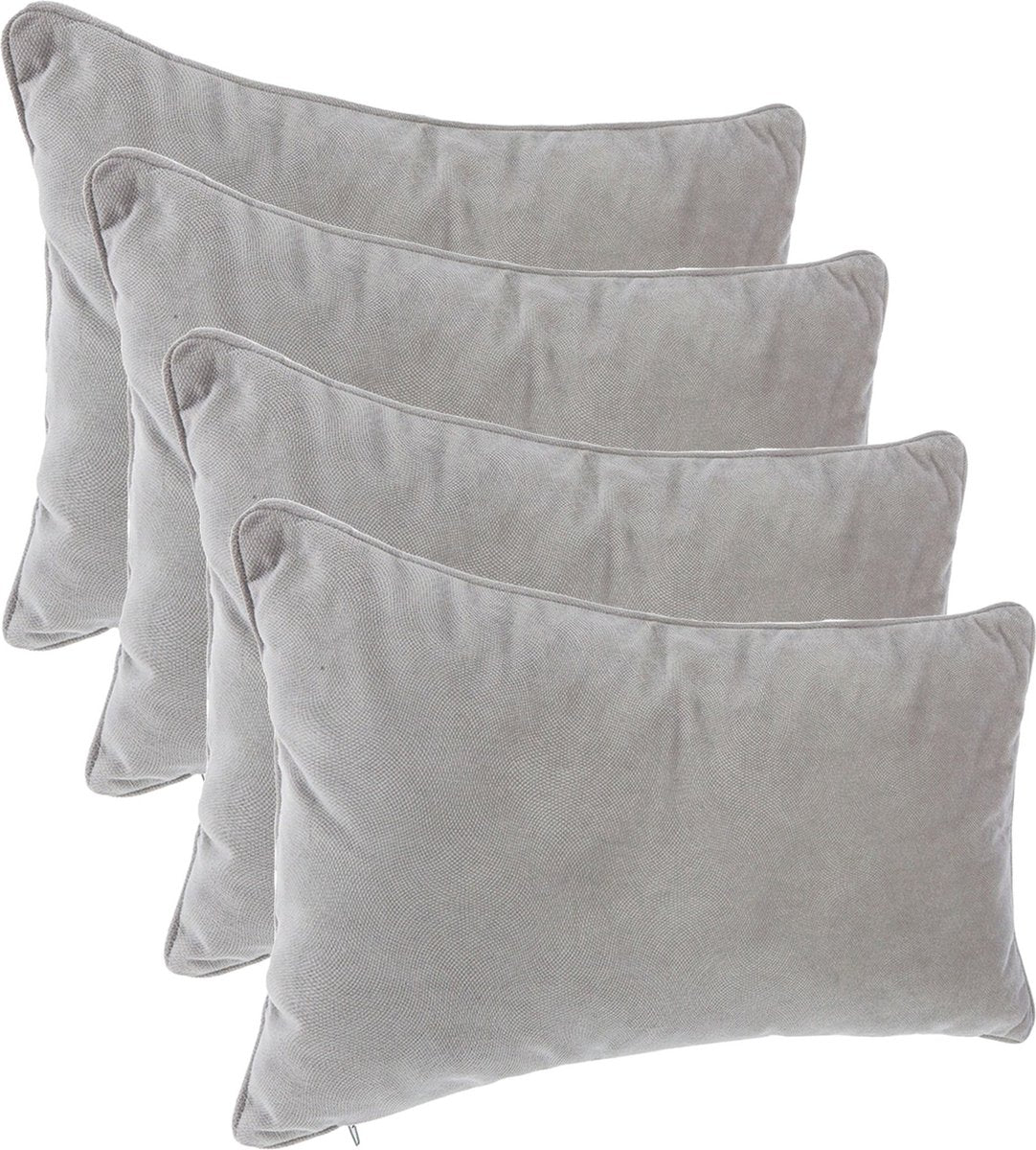 Atmosphera Bank/sierkussens huiskamer Sophia - 4x stuks - 30 x 50 cm - Zilvergrijs - polyester - met rits