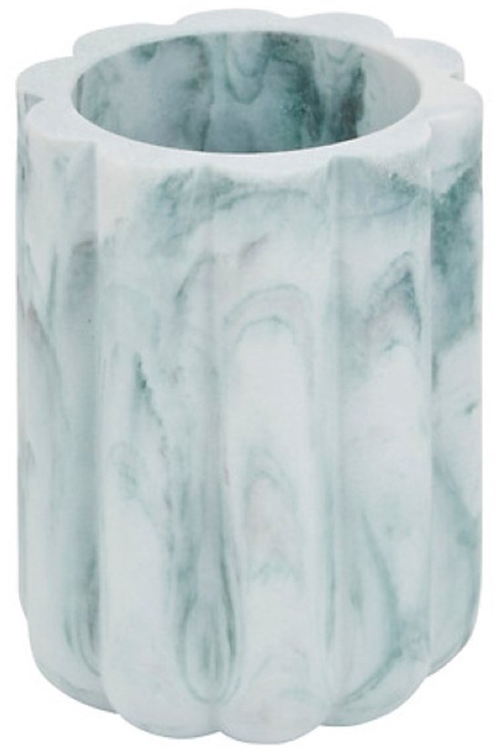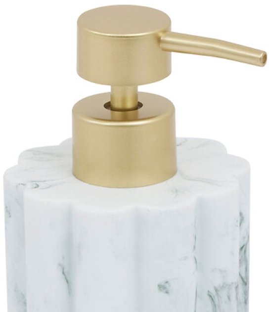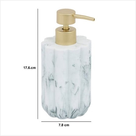 Badkamer Accessoiresset – Moderne Badkamer Accessoires – Zeeppomp 230ml & Tandenborstelhouder Set – Luxe Zeepdispenser & Tandenborstelhouder Set – Polyresin – Wit Marmer