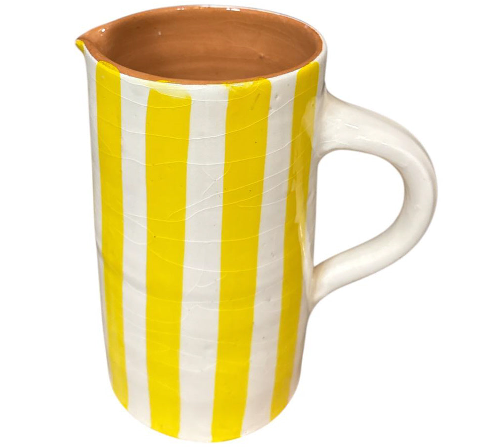 Breng kleur en karakter in je interieur met deze stijlvolle handgemaakte keramieken kan. De kan is met de hand vervaardigd en voorzien van verticale strepen in een speelse retrostijl. Ideaal als waterkan, bloemenvaas of als opvallend decoratiestuk. De vormgeving is praktisch en esthetisch tegelijk, met een comfortabele handgreep en een stevige cilindervorm.