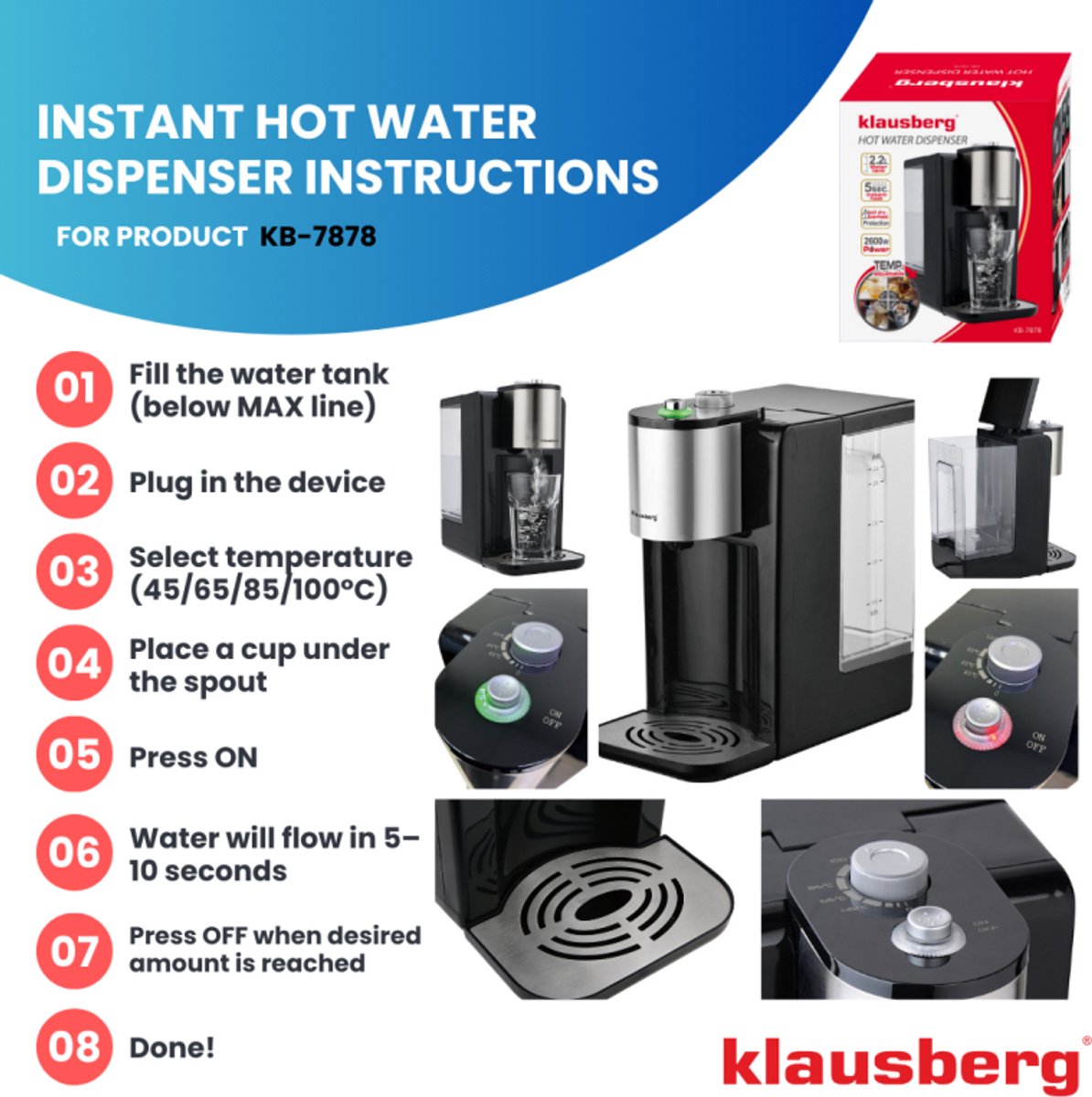 Precies de juiste watertemperatuur met de Klausberg KB7878 Hot Water Dispenser