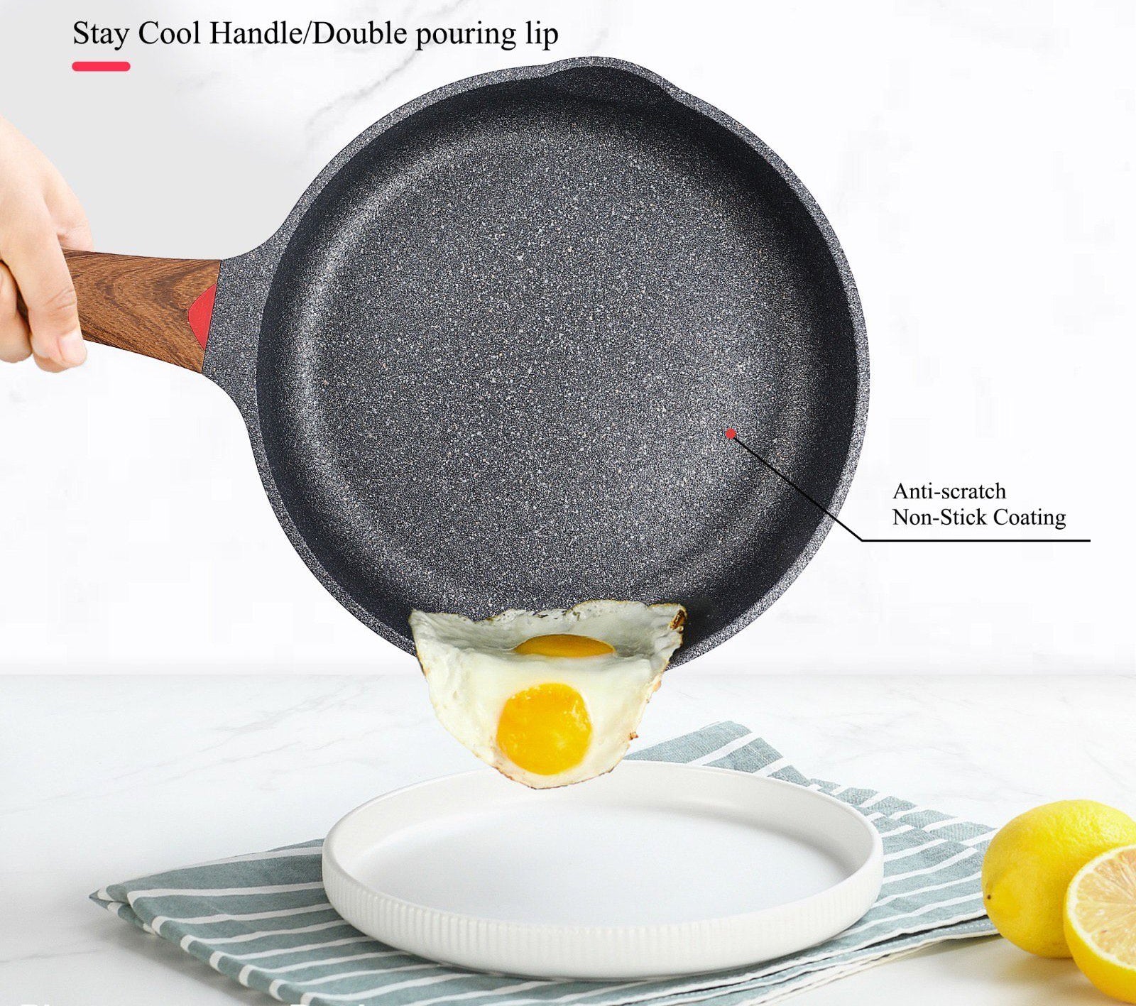 Deze koekenpan combineert stijl en prestatie op ongeëvenaarde wijze. Met een verdikte bodem voor gelijkmatige warmteverdeling en een anti-toxische antiaanbaklaag, zorgt deze pan voor moeiteloos koken en schoonmaken. Een perfecte mix van schoonheid en functionaliteit.