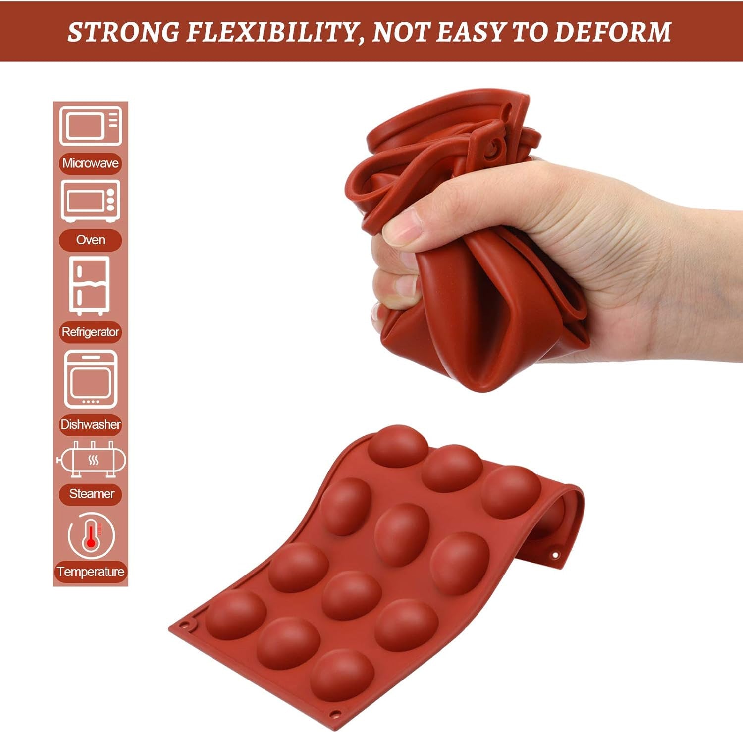 Deze duurzame en flexibele siliconen chocolademallen zijn niet gemakkelijk te breken, en je zult merken dat deze bakvormen praktisch bakgereedschap zijn voor het maken van chocolade en andere snacks