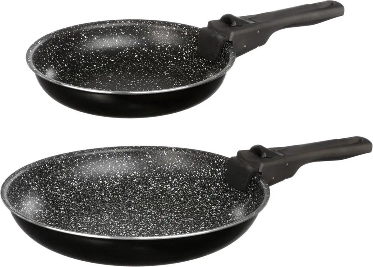 5Five Pfannenset 2-teilig - Alle Herdarten - Schwarz - Ø 20 und 26 cm - abnehmbarer Griff - Camping