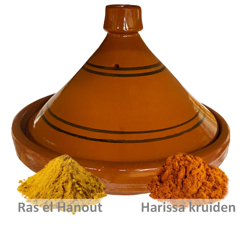 Tontajine 30 cm mit Ras el Hanout und Harissa Gewürzen