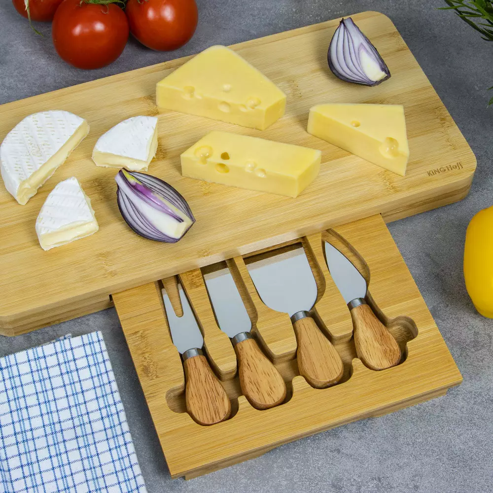 KINGHoff Bambus-Käseplatte mit Zubehör – Verschiedene Farben
