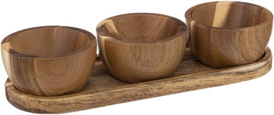 Serviertablett mit drei Servierschalen – Akazienholz