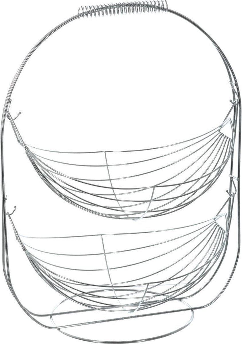 Doppelstöckige Etagere Obstschale/Obstkorb rund Silber Metall 34 x 25 x 46 cm - Obstschalen/Obstkörbe - Drahtkorb aus Metall
