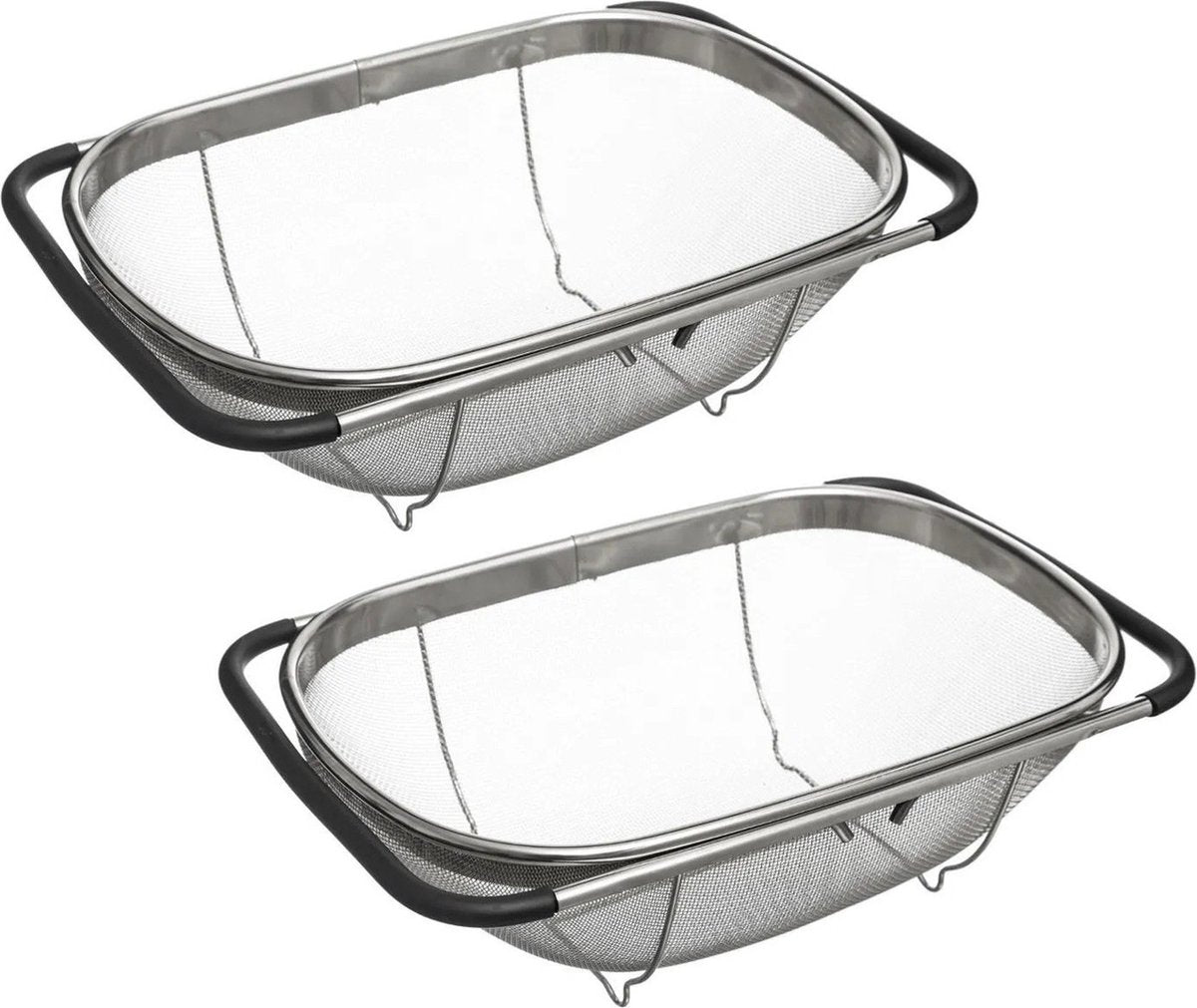 2 Stück Spülbecken-Sieb silber 36,5 x 23 cm aus Edelstahl. Die Ränder des Siebs sind ausziehbar, sodass Sie es über... Lesen Sie mehr