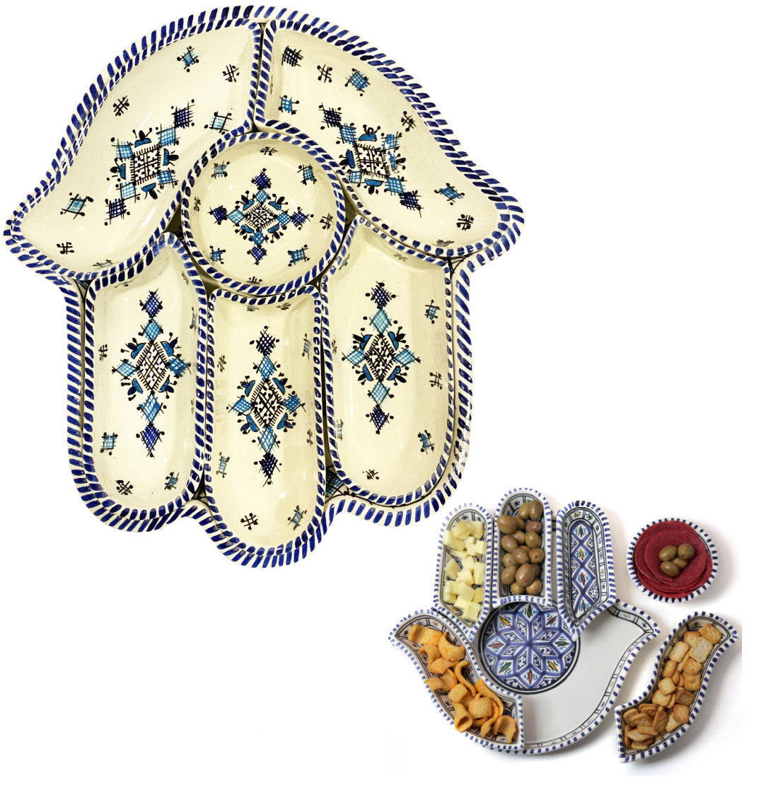 Khamsa Vorspeisen-Servierset blau-weiß
