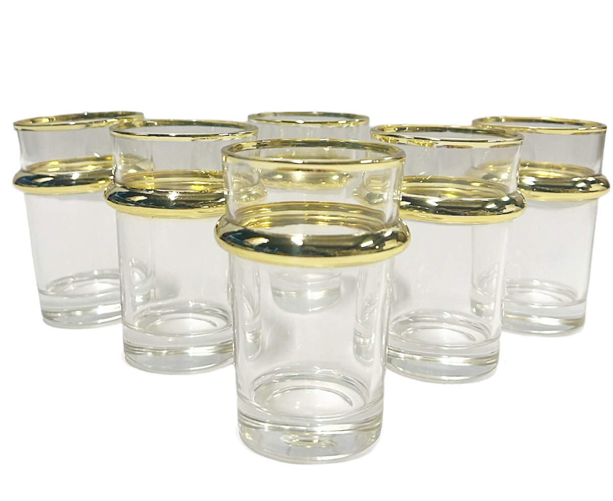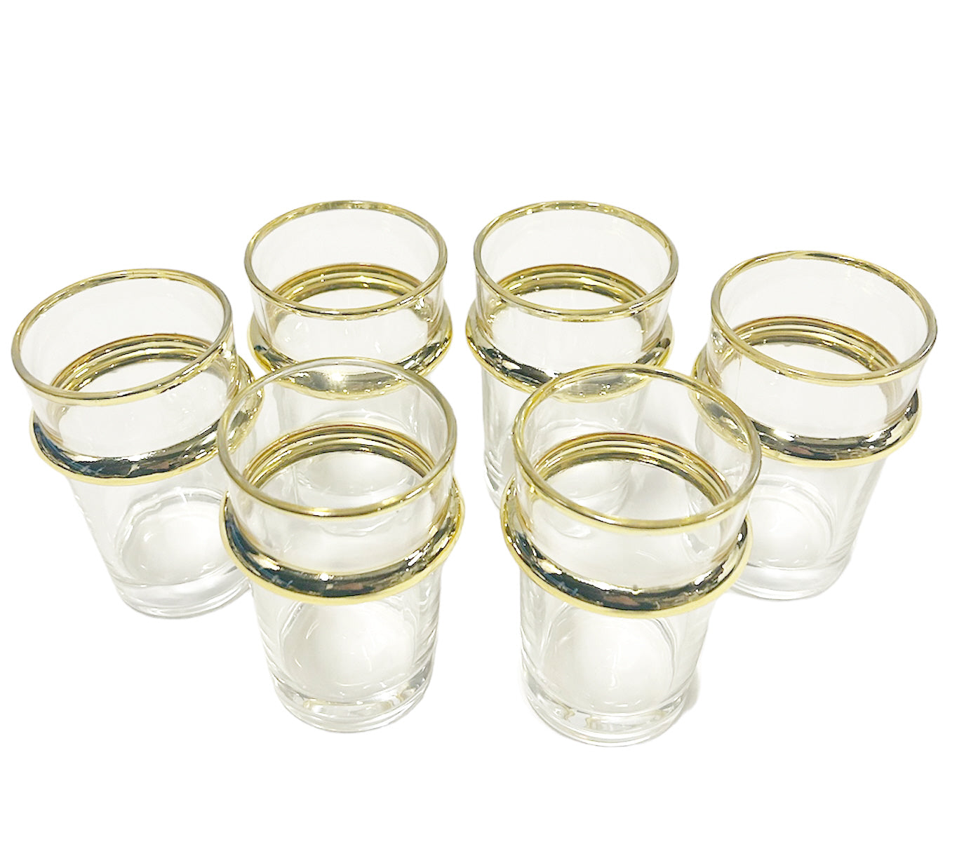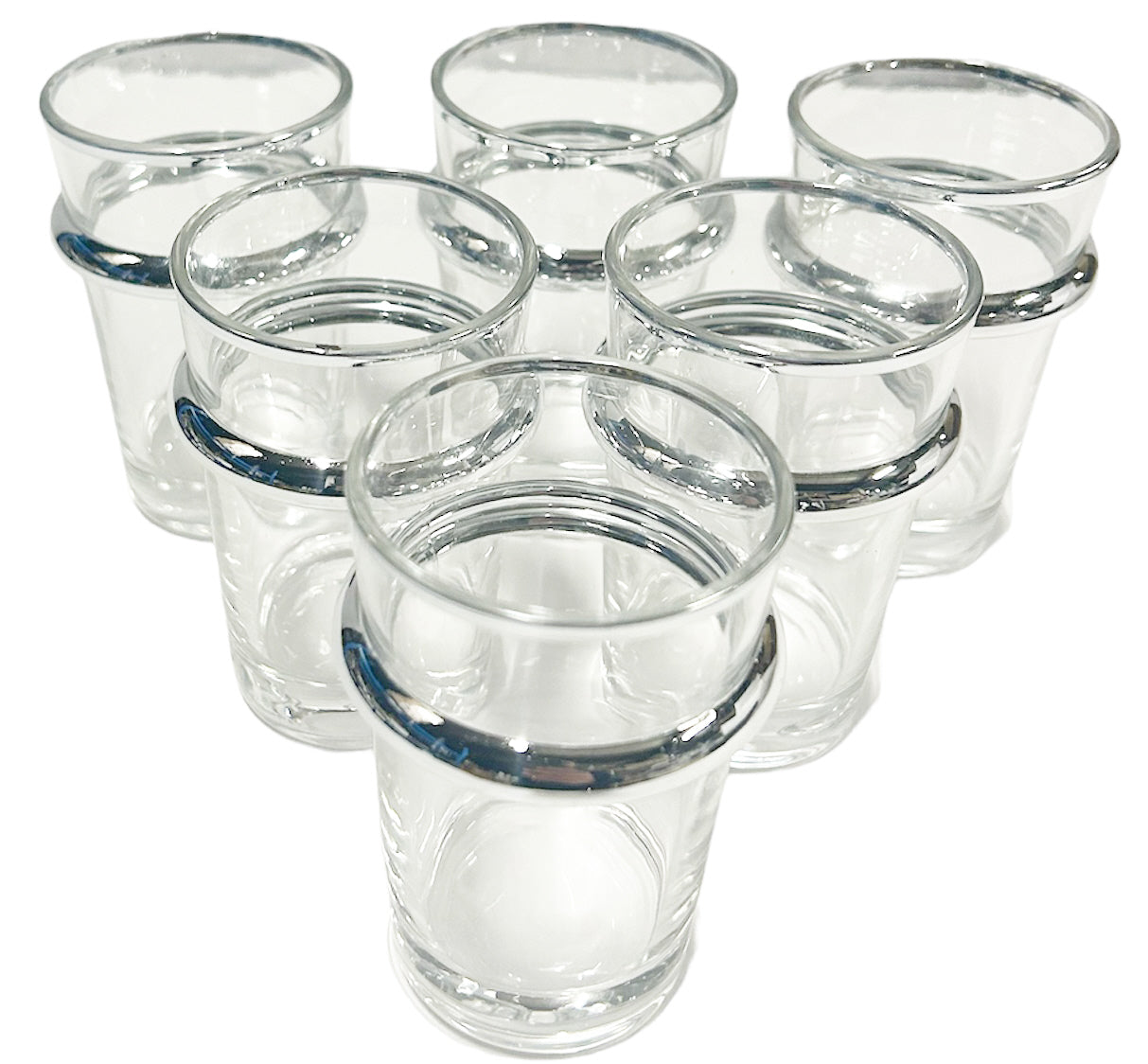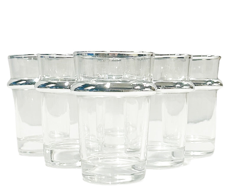 Set mit 6 transparenten Gläsern im marokkanischen Design, erhältlich mit silbernem oder goldenem Rand. Diese Beldi Designgläser sind ein ikonisches... Lesen Sie mehr