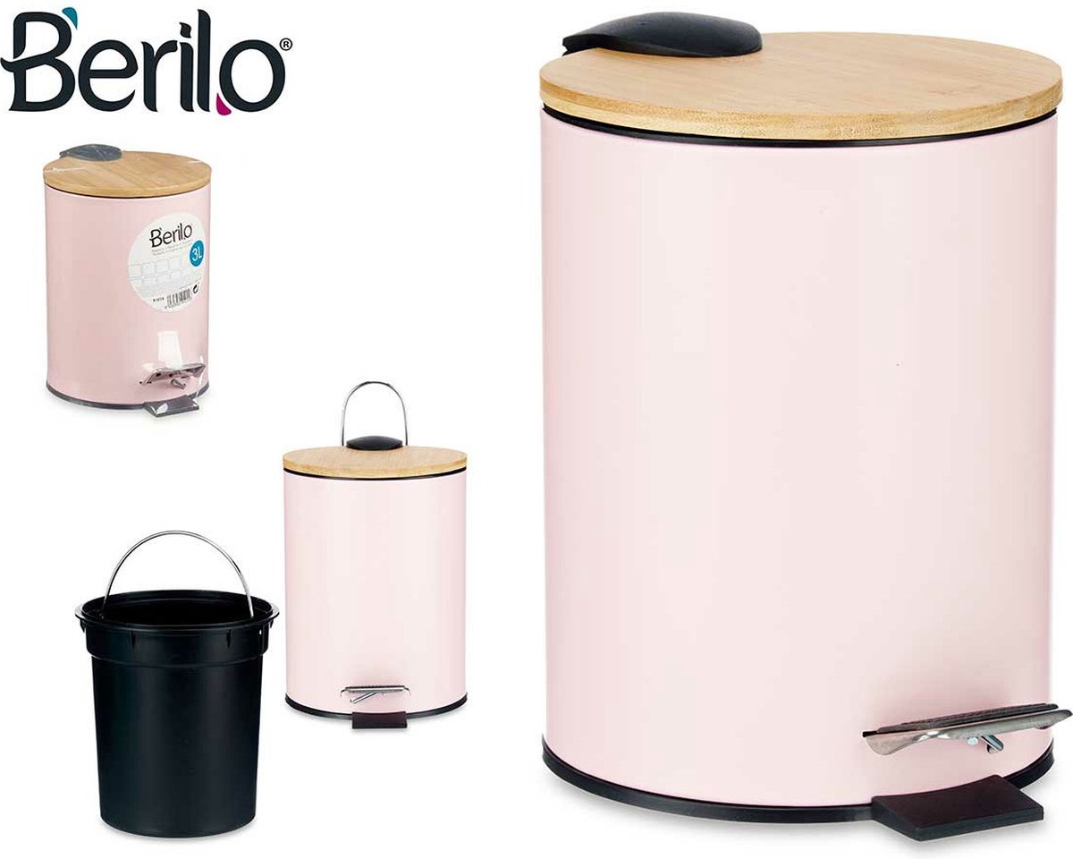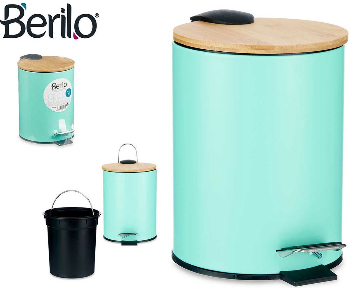 Mülleimer/Treteimer – 3 Liter – Metall/Bambus – 17 x 23,5 cm