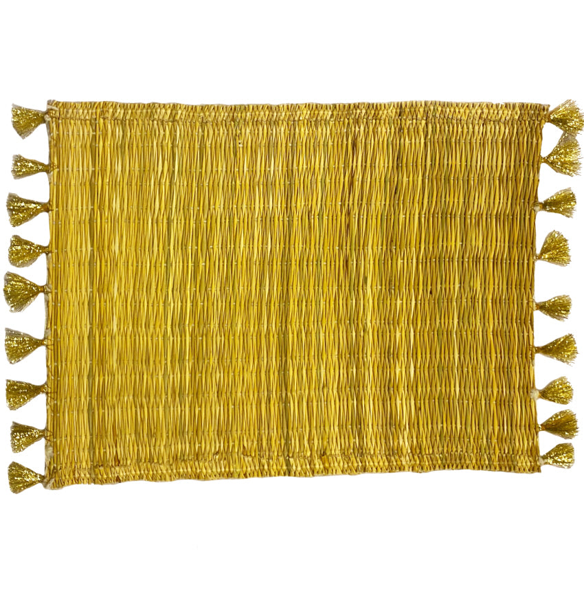Handgefertigte Bast-Platzsets mit silbernen oder goldenen Pompons. Abmessungen: 40 cm x 29 cm Lesen Sie mehr