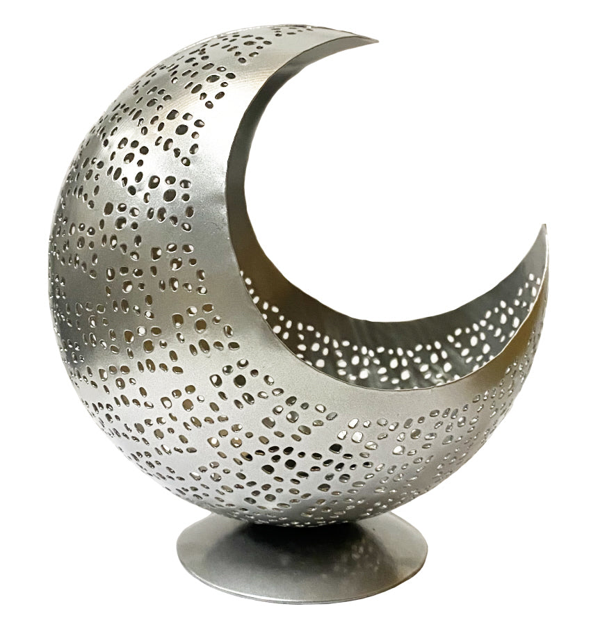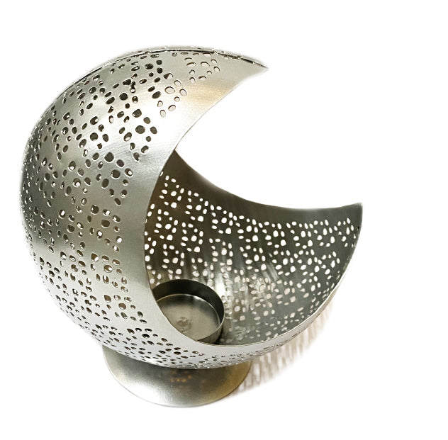 Wunderschöner handgefertigter Teelichthalter in Mondform mit Löchern, durch die sich ein atemberaubendes Licht an den Wänden widerspiegelt. Wunderschön als funkelndes... Lesen Sie mehr